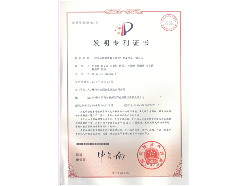 發(fā)明專利證書