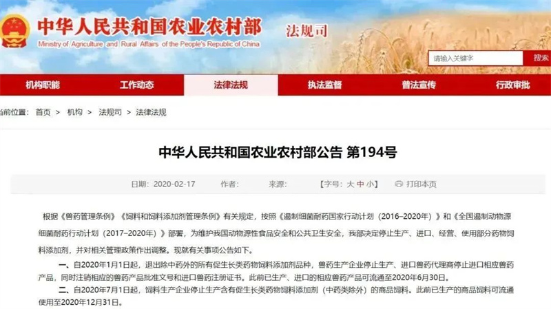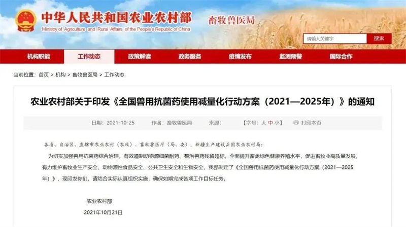 為了遏制微生物耐藥,自1986年開始,世界各國陸續(xù)在動物飼料和養(yǎng)殖生產(chǎn)中實行禁抗、減抗政策。我國農(nóng)業(yè)農(nóng)村部發(fā)布第194號公告:自2020年7月1日起,飼料生產(chǎn)企業(yè)停止生產(chǎn)含有促生長類藥物飼料添加劑(中藥類除外)的商品飼料。并于2021年制定了《全國獸用抗菌藥使用減量化行動方案(2021—2025年)》,行動方案指出:到2025年末,50%以上的規(guī)模養(yǎng)殖場實施養(yǎng)殖減抗。